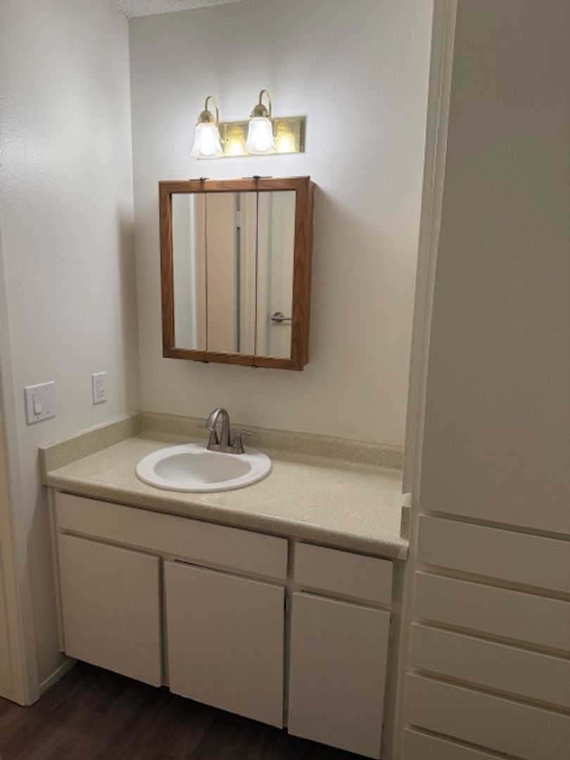 Clean & Spacious SW Upstairs "Studio Apartment" + 1 Bathroom. Rent $950.00 + RUBS + Security Deposit $500.00. Carpet, Blinds, Stove, Refrig, Garb Disp, A/C, NO Pets, Laundry Facilities, Community Pool & Covered Parking, Month-to-Month *Great Location close to Shopping, Gym & Eateries! Schools: Caroline Harris Elementary School, Curran Middle School, & Bakersfield High School *For further information please contact the Onsite Manager "Brooke" at (661) 323-3641 or "Realty Management Services" located @ 300 H Street, Bakersfield, CA 93304 (661)327-4496 DRE License #01492538. -Cross Streets: California Ave. & Chester Ln.