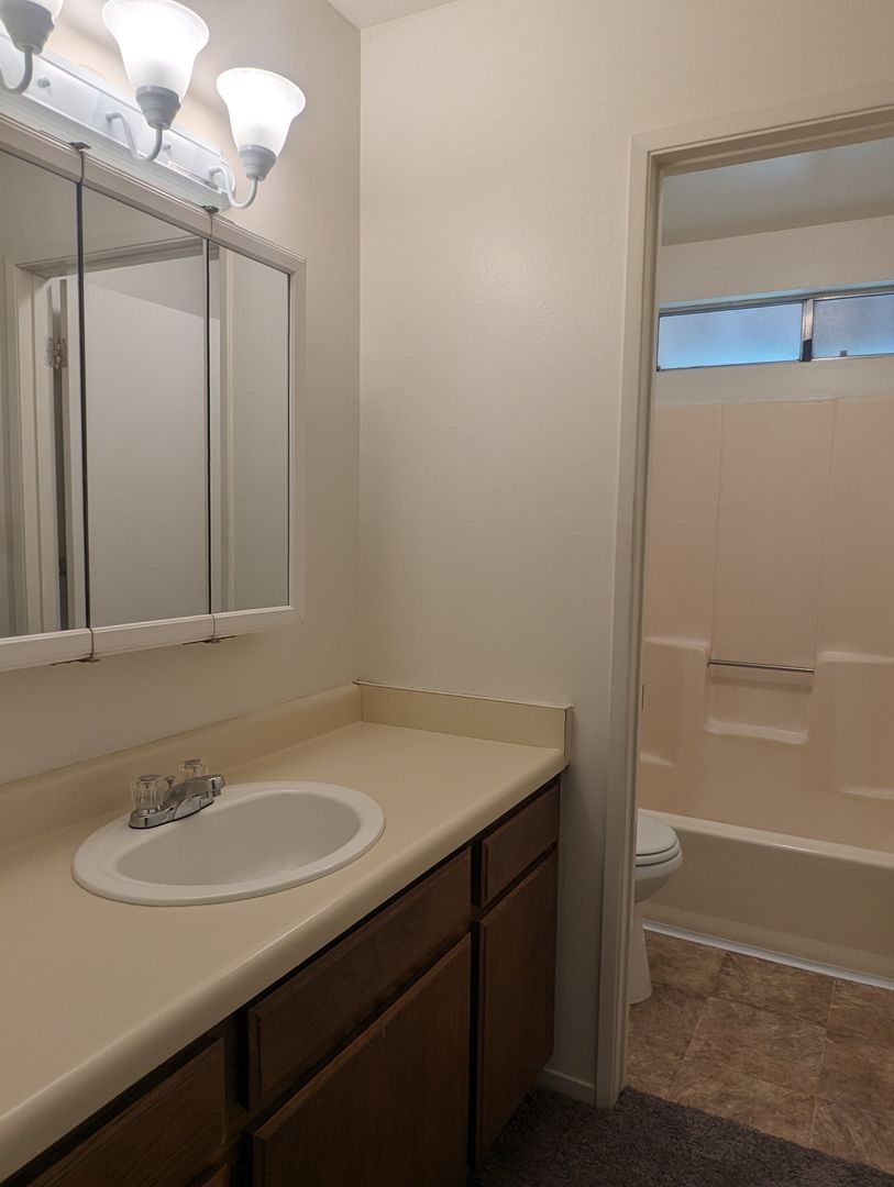 Clean & Spacious 2-Bedroom + 1-Bathroom Upstairs Apartment: Blinds, Stove, Dishwasher, Garb. Disposal, Ceiling Fans, Dining Area, A/C, Community Pool, Laundry Facilities, Covered & Uncovered Parking, Sprinklers-Front&Back, Gardener- Front&Back, 10-Month Lease Required, No Pets Allowed *Applicants are required to maintain renters insurance of 100k & submit proof of coverage for the duration of their residency. *Schools: Highland Elementary School, Standard Middle School, North High School *For further information please contact the on-site manager, 'Ricky', at (840) 216-0079 or our office "Realty Management Services" located @ 300 H Street, Bakersfield, CA. 93304, (661) 327-4496, DRE License #01492538. -Main Streets: N Chester Ave. & Petrol Rd