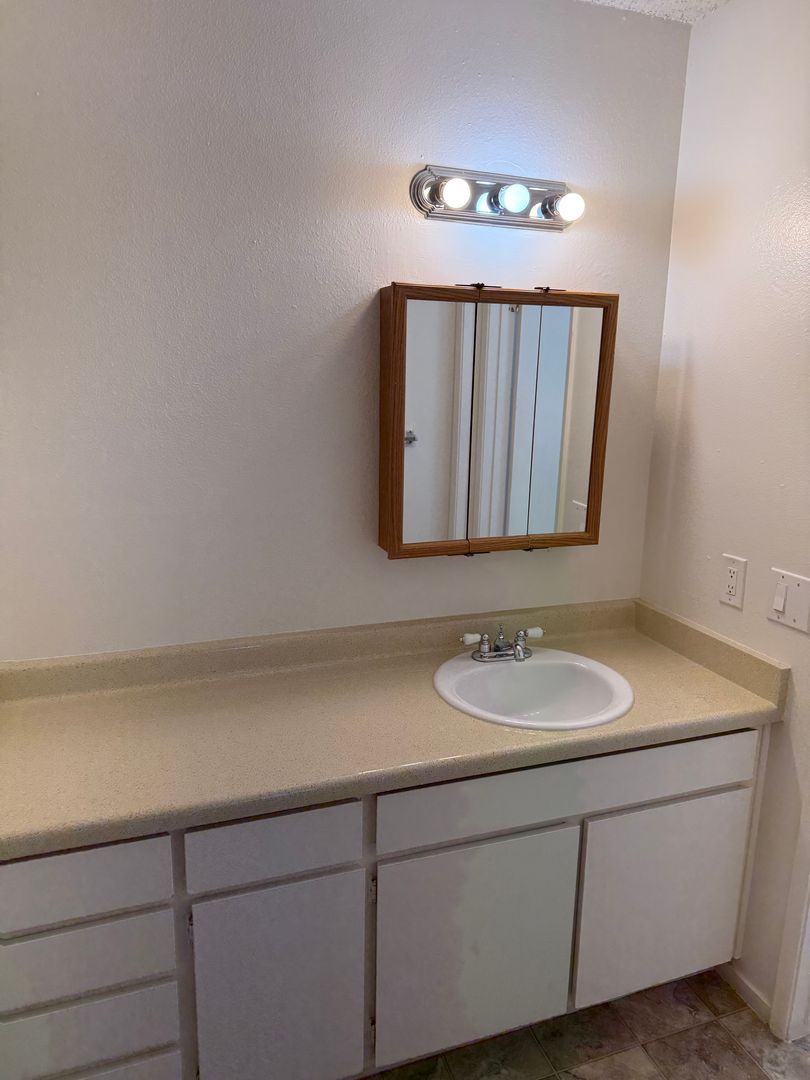 Clean & Spacious SW DOWNSTAIRS 1-Bedroom + 1-Bathroom Apartment: Rent $1,095.00 + RUBS + Security Deposit $500.00. Carpet, Blinds, Stove, Refrig, Garb Disp, A/C, Dining Area, Patio, NO Pets, Laundry Facilities, Community Pool & Covered Parking, Month-to-Month *Great Location close to Shopping, Gym & Eateries! *Schools: Caroline Harris Elementary School, Curran Middle School, & Bakersfield High School *For further information please contact the Onsite Manager "Brooke" at (661) 323-3641 or "Realty Management Services" located @ 300 H Street, Bakersfield, CA 93304 (661)327-4496 DRE License #01492538. -Cross Streets: California Ave. & Chester Ln.