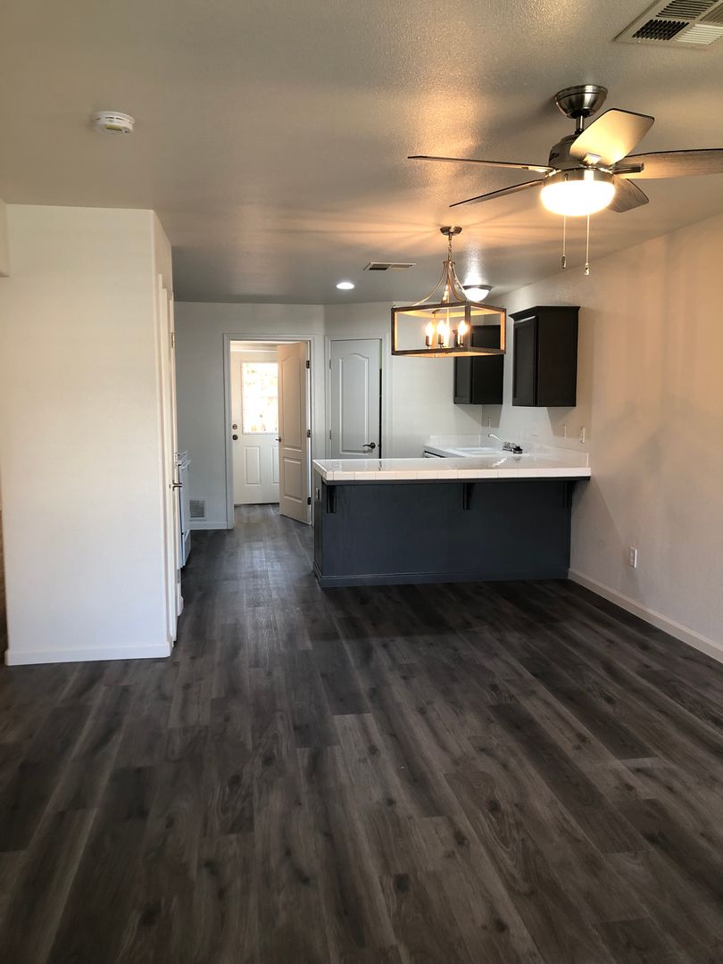 Clean & Spacious NE 2-Bedroom + 2-Bathroom DOWNSTAIRS Apartment: Vinyl Flooring, Blinds, Stove, Dishwasher, Garb Disp., Dining Area, Ceiling Fans, Den, Fenced Yard, Laundry Hkups-G&E, A/C, Gardener-Front Only, Sprinklers-F&B, Non-Smoking, No Pets Allowed, 10-Month Lease Required *Applicants are required to maintain renters insurance of 100k liability & submit proof of coverage for the duration of their residency. *Schools: Dr. Juliet Thorner Elementary School, Chipman Junior High School, Highland High School *For further information please contact "Realty Management Services" located @ 300 H Street, Bakersfield, CA. 93304, (661)327-4496, DRE License #01492538. -Main Cross Streets: Fairfax Rd